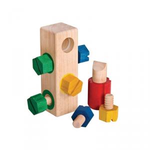 Este bloque de madera ha sido ideado para que estimular la motricidad y la coordinación sea más divertido que nunca, además de aprender a relacionar las diferentes formas y colores. El destornillador se almacena dentro de la pieza de madera de forma segura, ¡así ocupa muy poco espacio!. Nos encanta las posibilidades de aprendizaje que ofrece un juego tan sencillo: Coordinación visual, motricidad fina y lógica, mientras estimula el reconocimiento de colores, ¡es perfecto para los pequeños de la casa!. El juego incluye un bloque de madera de medidas 10 x 10 x 15 cm, 6 tornillos de colores y un destornillador. Colorantes orgánicos de anilina.. De 0 a 2 años